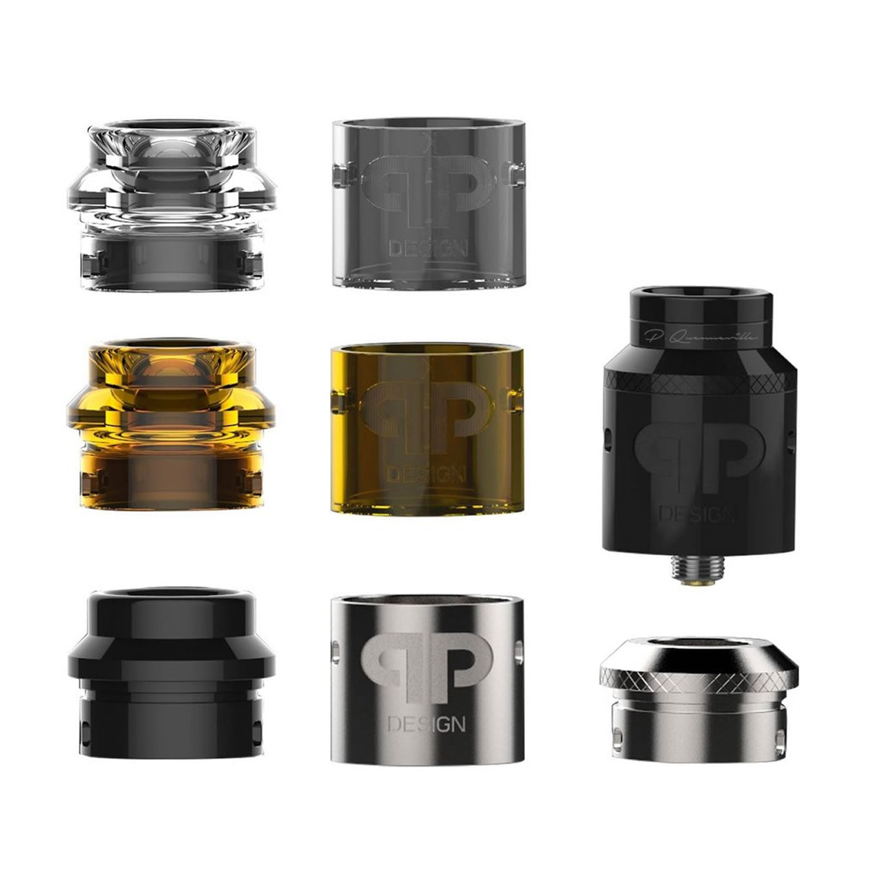 Die Hersteller von QP Design haben eine tiefe Liquid Wanne für Squonker-Fans gebaut, um ein sorgenfreies Squonken zu gewährleisten. Darüber hinaus sind 3 verschiedene Top Caps enthalten, die alle eine hervorragende Optik aufweisen und perfekt zum restlichen Lieferumfang passen. QP Design hat nicht gespart, denn es liegen noch optisch passende Tanks dem Set bei, der Dampfer kann hier selbst entscheiden, wie er seinen Verdampfer kombiniert.
